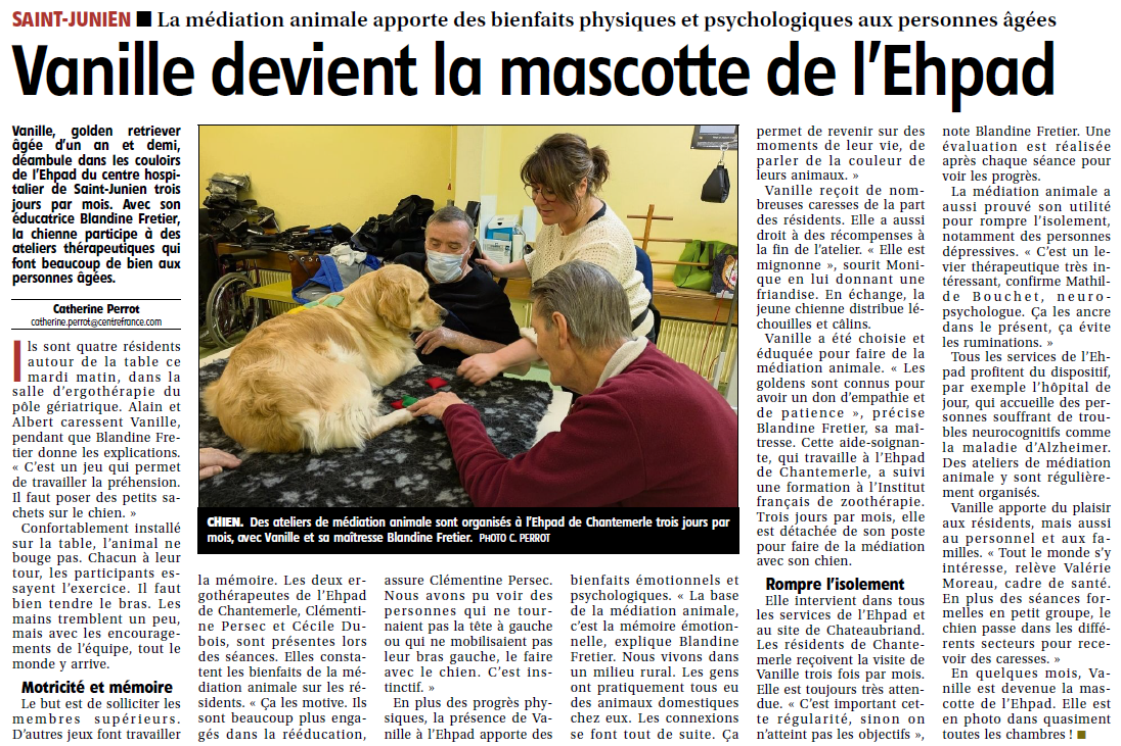 Cliquez ici pour consulter l'article sur la Médiation animale publié par Le Populaire du Centre le 03/12/2025.